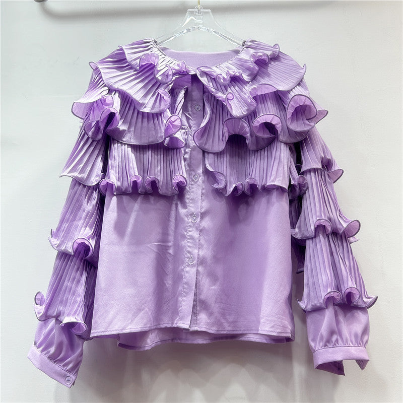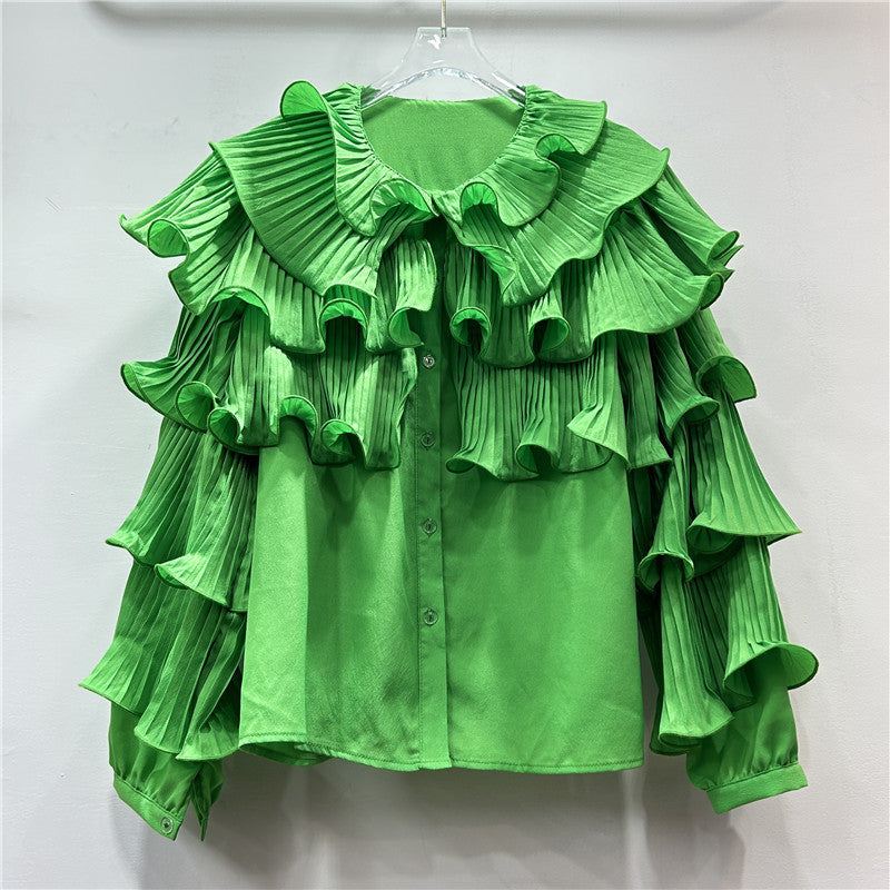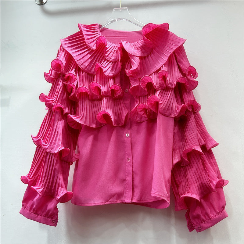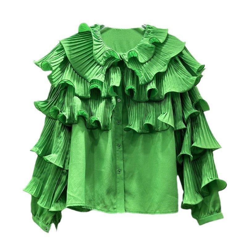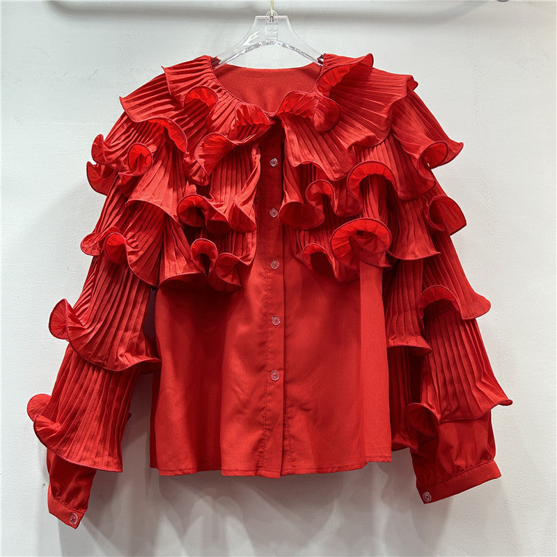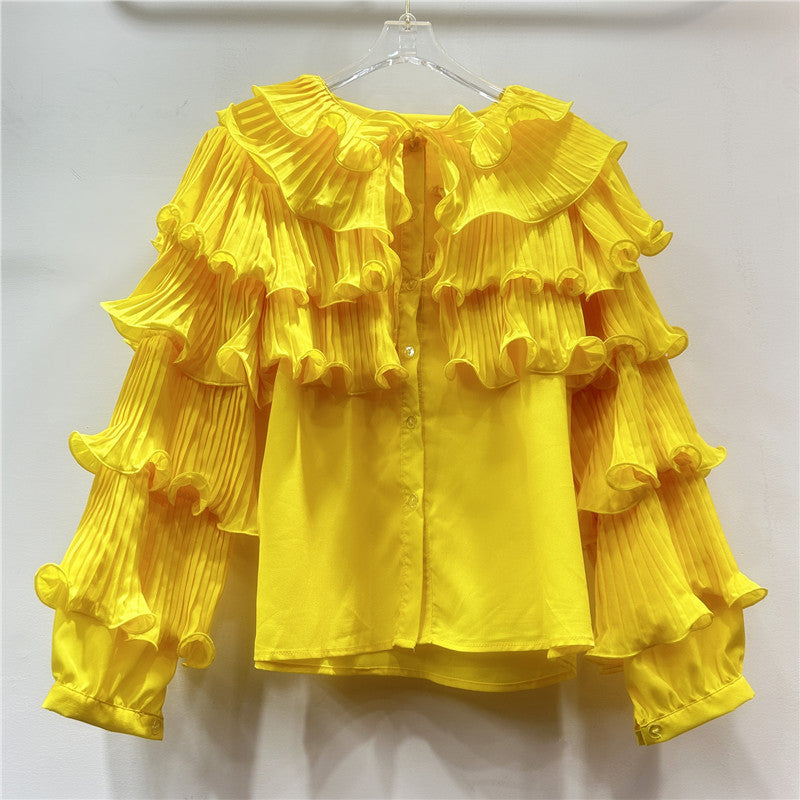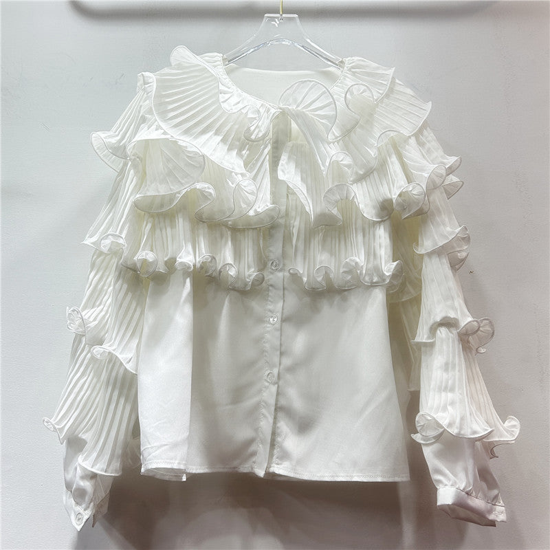 Korean Style Light Luxury Socialite Bubble Sleeve Ruffled Loose Chic Design Adult Lady Like Woman Temperament Top
